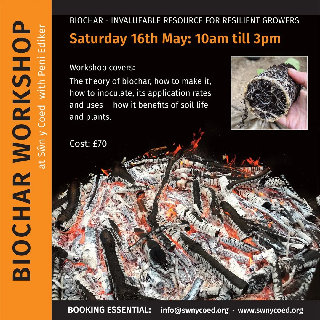 Biochar Workshop Saturday, May 16, 2026 10:00 AM 3:00 PM Swn Y Coed Abbey Rd, Whitland, Carmarthenshire SA34 0LH Wales (map) Google Calendar ICS